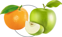 Orange, lemon, and apple​